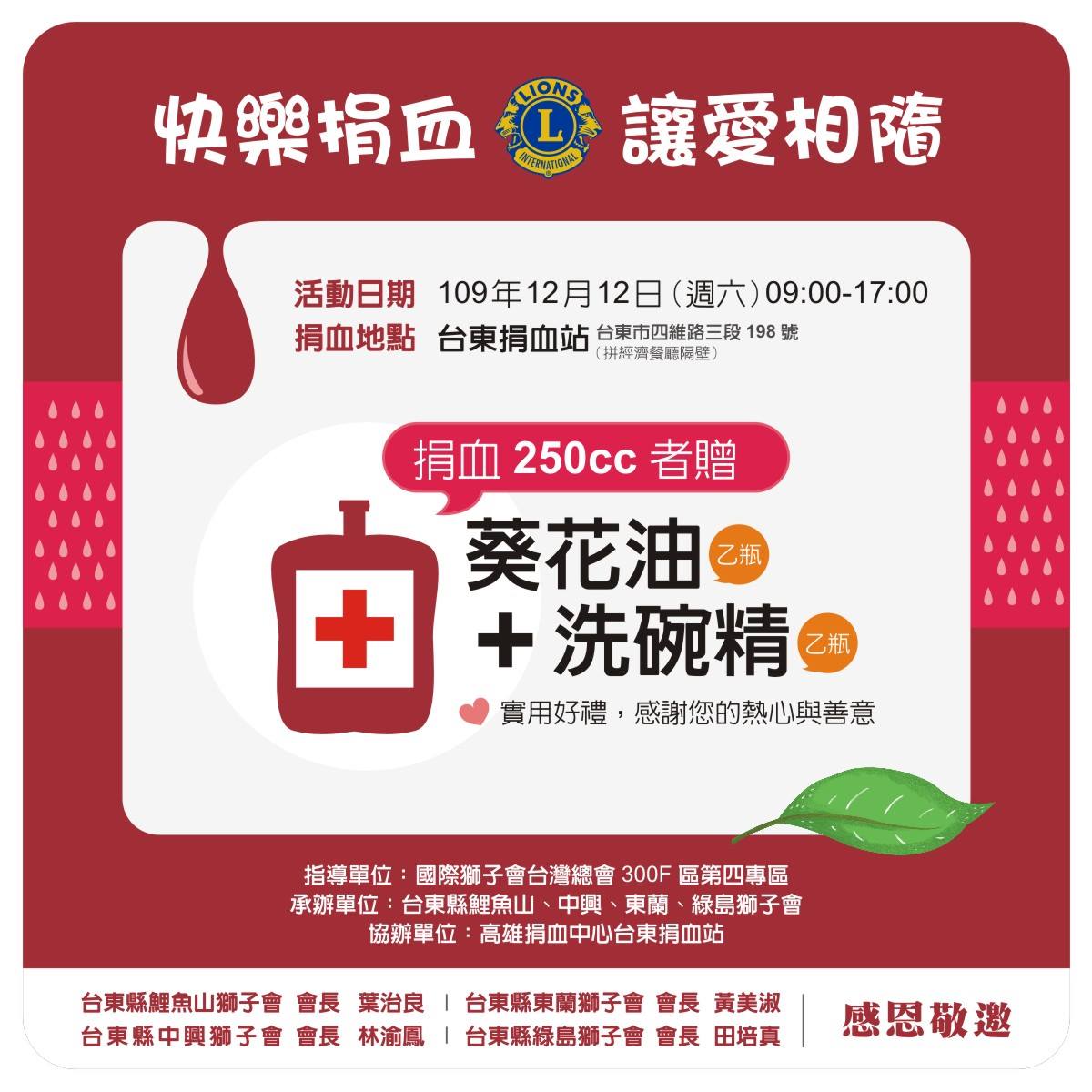 協辦單位:高雄捐血中心台東捐血站